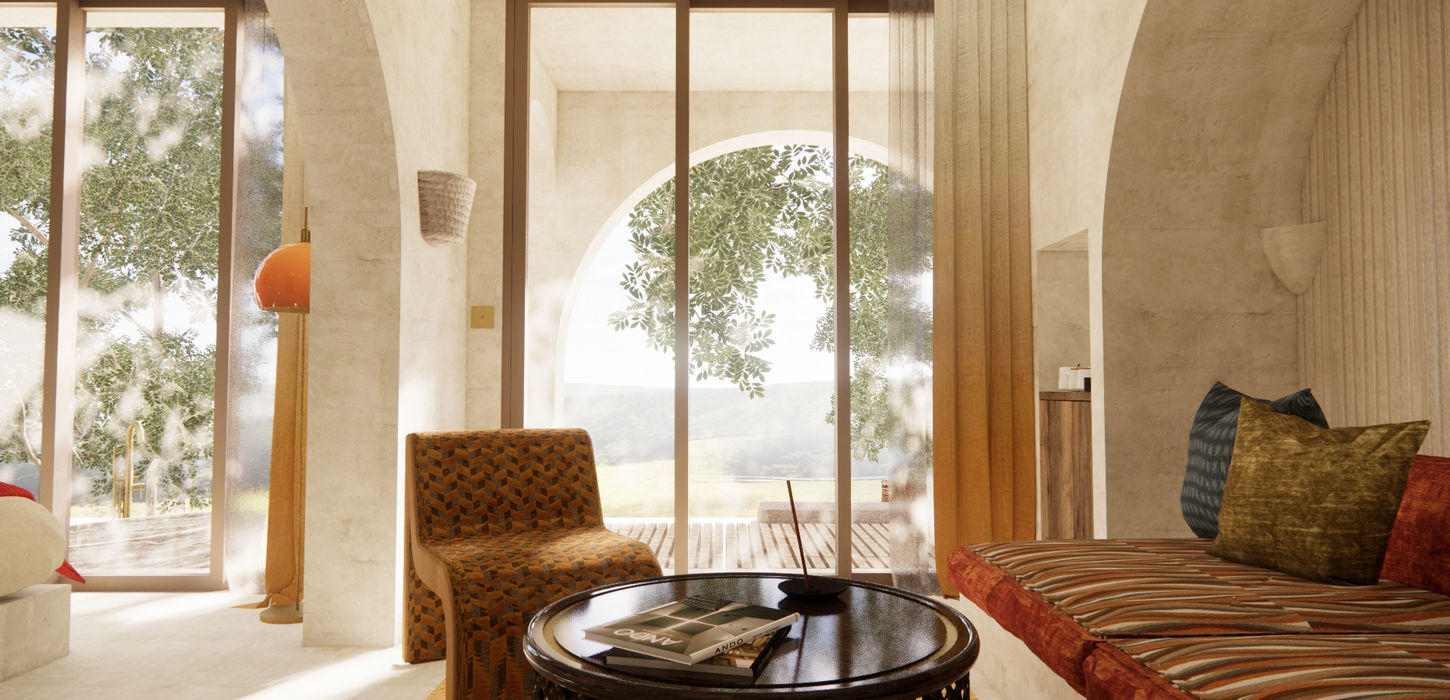 The 182-room retreat embraces Ibiza’s architectural DNA through the use of white stone, sabina wood, and hand-crafted terracotta tiles. The interiors showcase a bold interplay of eras, blending 1970s nostalgia with contemporary sensibilities. The result is a refined aesthetic tension, seemingly contrasting, yet perfectly balanced.